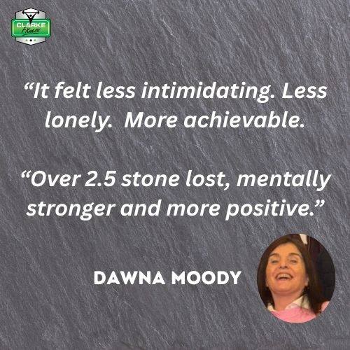 Before joining Clarke Fitness, Dawna describes herself as being physically and mentally very low.